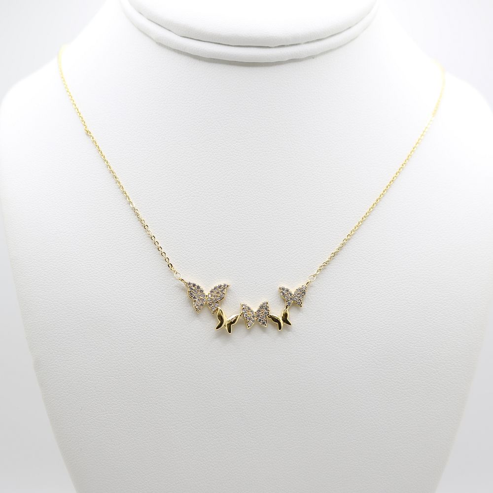 Product Description NECKLACE ROLO BUTTERFLY CZ STONE CHARM E29 18K Gold Filled Thickness: 1 MM Size: 15-16 INCH Charm size: 9 X 10 MM