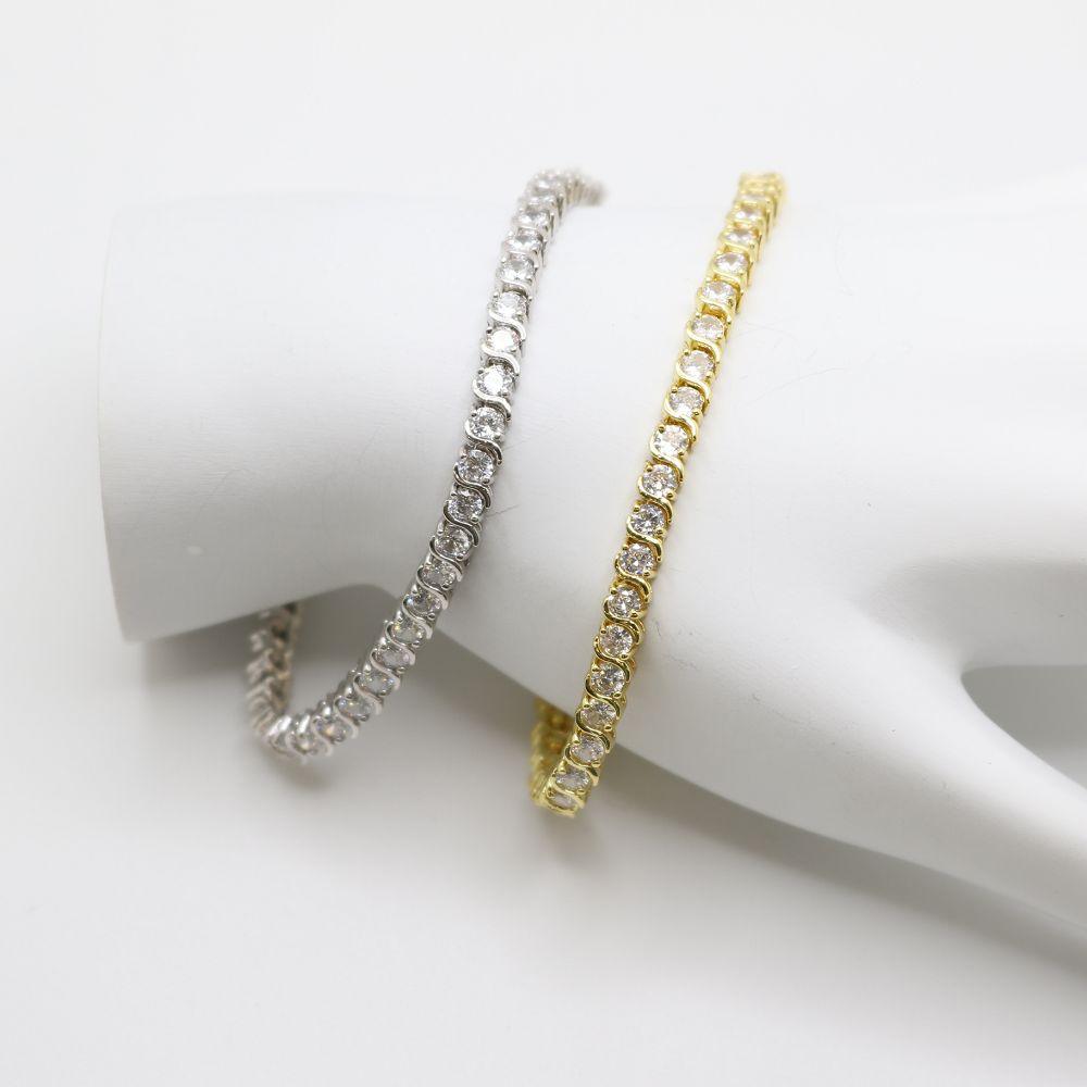 Product Description BRACELET DESIGNED CZ STONE D33 18K Gold Filled Thickness: 3 MM Size: 7 INCH EACH SOLD SEPARETLY
